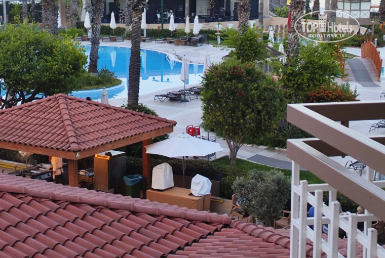 По приезду утром сразу отправили на завтрак и в 11 часов уже заселили в номер. Номер свежий, чистый, красивый, в главном здании с видом на бассейн, амфитеатр и виднелось даже море.