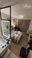 Теперь о самом номере. Хотя и отель новый, но вся мебель уже сломана, в потертостях. Везде что-то отваливается. Холодильник не холодил, хотя свет в холодильнике горел. Кондиционер не охлаждал, практически. На мебели, на столиках была белая пыль, которая сыпалась с потолка. Так как наш номер выходил на технический въезд для автомобилей обслуживания, то каждое утро в 6 утра мы просыпались от страшного грохота мусорных контейнеров, которые грузили в приехавший мусоровоз около 20 минут. Мини бар состоял из газировок, соков, воды. Алкоголя не было. Пополнялся ежедневно.