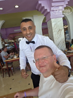 Имейте ввиду, что в столовой работает администратор зала (а может старший официант), лысый такой, не очень молодой, будет приветливо вам улыбаться и спрашивать как дела, а потом попробует продать вам оливковое масло в 3 раза дороже, чем в магазинах, но типа очень крутое) и нальет его в бутылку из под минералки) мы купили. Но нам кажется, что он просто взял его на кухне отеля)).