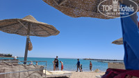 Пляж отличный, полотенца выдают с 7 утра и принимают обратно до самого заката, шезлонгов всегда хватало, но матрасов на них почти нет и они часто были заняты, первую линию занимают очень рано, есть экраны для ограждения своего пространства или просто от ветра, пляж песчаный, заход в море пологий, мелкие камушки с песочком, пляж постоянно чистят и убирают, море шикарное.