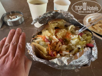 Так же можно пообедать в Garden bar. Есть крошка-картошка, которая совсем не крошка )). И есть фиш-чипс – шикарное филе белой рыбы во фритюре с деревенской картошкой.
