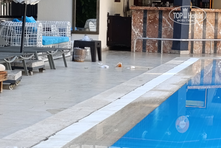 Как только мы приехали впечатление об состоянии отеля, о его чистоте было удручающем? Везде валялся мусор. На территории бассейна были полные урны. Потом размещение произошло в 12 часов раньше 2-это хорошо. В столовой на завтраке практически нечего было есть из фруктов, были яблоки, поели варёные яйца, их было в достатке. Вообще в целом, если бы не праздник Курбан байрам, который как раз начался через 2 дня после нашего заселения, мы так и оставались бы голодными. К приезду огромного количества гостей -Турков, кормить стали очень хорошо. Номер достался хороший. Убирали каждый день. Единственная под унитазом постоянно была лужа воды, которая стояла в туалете постоянно. Подтянули гаечку под унитазом самостоятельно эту проблему решили. Анимация слабая только вечером включали музыку диджей, при этом он был абсолютно немногословен, не произнёс ни 1 слова. Когда начался праздник "курбан байрам", тогда начались развлечения, но мы отдыхать заехали за 3 дня до этого. Пляж хорошо расположен, ходит трансфер редко, но пешком можно дойти быстро за 10 минут. Лежаков от отеля мало. Чуть подальше есть лежаки ещё, в принципе всем хватало.