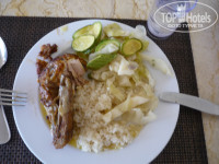 В основном ресторане есть все необходимое и вкуснее. Думаю, каждый может найти что-то для себя. Обычно всегда были курица или рыба, говядина, иногда утка. Из гарниров: рис, овощи, макароны. На утро готовили яичницу или омлет по желанию, но на таком количестве масла, что от вида мне становилось плохо)) но были также вареные яйца. Вкусные блинчики.