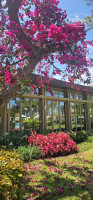 Территория. Зелёная, сосны. Лужайки, большой бассейн. Холодильники в напитками (в определённые часы)