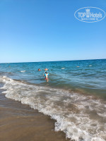 Пляж хороший, чистый, но нужна обувь, поскольку там есть мелкая и не очень галька. Лежаки под тестами были всегда. Тент очень удобен, хорошо от солнца закрывает.