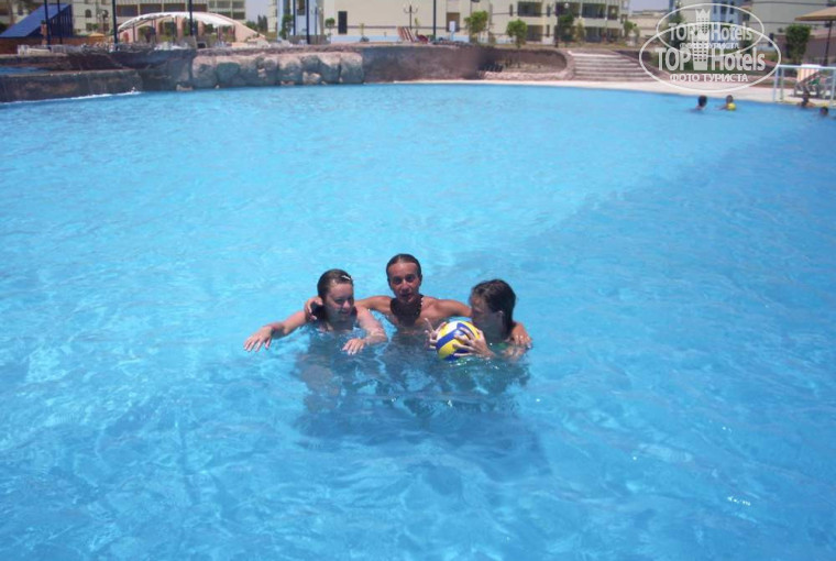 Территория отеля огромная. 1 глубокий бассейн 2,5 м., бассейн с пулбаром – любимое место встречи русских туристов, бассейн, где проводятся различные игры, в том числе и аквааэробика, детский бассейн, бассейн с соленой водой (правда ходили слухи, что там купают верблюдов по ночам, по этому мы так и не рискнули искупаться в нем) и джакузи. Поплавать в Красном море не проблема, как многие пишут об этом, не смотря на то, что пантоны еще не построен, вход в море есть только с одного места, песчаной косы, до которой идти метров 100 не больше. Такого разнообразия рыб я не видела никогда, даже в аквариумах. Мне много рассказывали о красоте подводного мира Красного моря, но когда я увидела своими глазами, то поняла, что лучше один раз увидеть, чем 100 раз услышать.