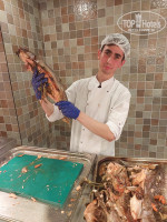 По поводу питания - такого разнообразия вкусных фруктов (клубника, абрикосы, нектарины, арбузы и дыни) до этого не видели в пятерках гораздо большей стоимости (обычно недозрелые бывают). Говядина, баранина, рыба всегда в нескольких вариациях, морепродукты не каждый день, но приготовлены очень хорошо. Ресторан просторный, большая веранда с видом на море, проблем с поиском столика не возникало. Рекомендую посетить рыбный аля-карт. Напитки имеются и местные, и импортные, бармены и официанты очень быстро работают.