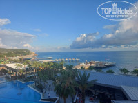 Территория отеля компактная, зеленая и очень хорошо продумана, задействован каждый уголок. Отличный активити-бассейн, а также детский водный городок и горки. На пляже песок, вход в море песок и мелкая галька. Вход очень хороший, пологий, для детей то, что надо. Вода очень чистая. Лежаков достаточно, найти свободные можно в любое время. Отдельный восторг по поводу пирса - он чудесный, вместительный, с душами, платформами для ныряния, плетеными креслами и баром. Есть отдельная зона с вип-домиками на пирсе.