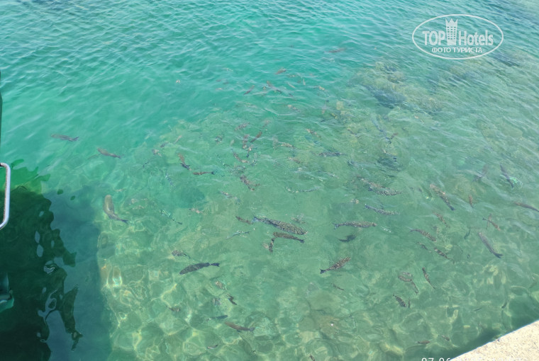 Зато море удивительно прозрачное – даже за буйками утром видно камни и стайки рыб. Волн вообще не было, один раз - рябь.