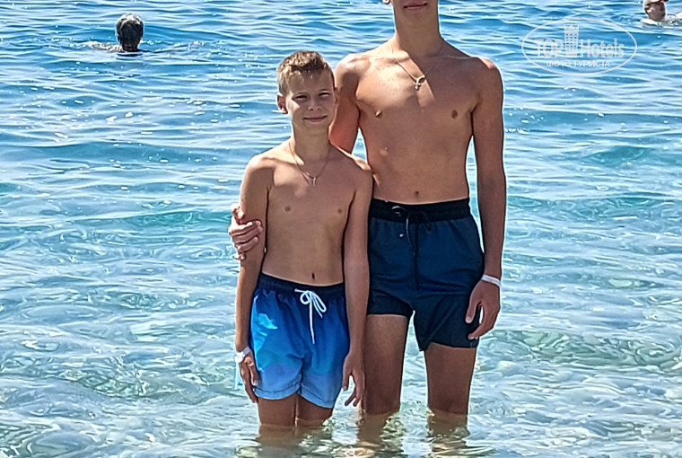В бассейне и на море народу не много, плавать комфортно, свободно. Вход на море галька, поэтому лучше приобрести аквашузы. Море чистейшее. Детям очень ноавилось прыгать с пирса. По вечерам вдоль моря чудесная дорога для променада.