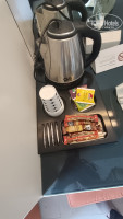 На территории отеля стоят холодильники со стаканчиками с водой, бери сколько нужно, так же есть пакетированный чай - зелёный, фруктовый, травяной, помимо чёрного.