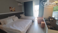 2. Номер стандартный, мини-бар заполнен, чай,кофе всё было, видно что ремонт был на скорую руку, но в целом номер уютный и комфортный, прекрасный вид на горы. Мы были в начале июня и у нас были тёплые одеяла, что меня очень порадовало, так же отмечу что на каждого было по 2 подушки и ещё дополнительно 1 подушка была в шкафу, так же были одноразовые тапочки, в ванной шампунь, гель, мыло для рук и лосьон для тела+маленький набор гигиенический, берите своё в общем. Так же был сейф.