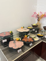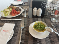 Не смотря на то что рейс из Москвы в Дубай задержали и пришлось долго добираться - отдых в отеле Рамада оставил только положительные впечатления! Заселили меня быстро, так как я пропустила ужин, принесли в номер еду и фрукты! Отмечу ребят на ресепшене - все отзывчивые, всегда интересовались как дела, все ли хорошо, все ли устраивает в номере и на пляже! На пляж из отеля возят по расписанию, если не успели то можно пройти пешком - минут 20 медленным шагом от отеля, на пляже чисто, на входе выдают полотенце, много лежаков всем хватит, вход в море замечательный, на дне есть не много ракушек, но если заходить осторожно то ноги не повредите, постоянно ходила босиком не смотря на то что был горячий песок. Бар на пляже работает с 9-00 на все включено выдаю воду, спрайт, колу, все из холодильников) На пляже пару раз давали всем мороженное - очень вкусное! Туалеты и раздевалка чистые, убираются и следят за чистотой. Еда отеля в ресторане - это не описать словами, все свежее и вкусное, встречается и острая еда - на любителя, пару раз были супчики из морепродуктов, были морепродукты запеченные с сыром, мясо курицы, говядина, рыба! Из фруктов - красиво порезанные дыня, арбуз, ананас, грейпфрут, целиком лежали яблоки, апельсины и бананы! Много сладостей красиво оформленных! В ресторане тоже давали мороженое! Понравилась кофейная станция, есть не только кофе машина, но и кофе заваренное на плите, постоянно горячее и вкусное, если нужно молоко то есть термопот с молоком, выбор кофе отличный, чай в пакетиках! По еде ни каких нареканий, наедалась очень быстро, все приготовлено и сервировано с душой! В ресторане чисто, сотрудники постоянно следят за чистотой и быстро убирают посуду! В номере чисто, мальчик уборщик старался, всегда приносил воду и полотенца! На День Рождения меня поздравили на ресепшен и принесли тортик в номер! Торт вкусный, ягодный, легкий, красиво и аккуратно украшен! Очень приятно, была очень рада такому подарку! Хотела передать всем большой привет и сказать большое спасибо за внимание! Большое спасибо администратору Отабеку, Жерарду менеджеру ресторана, менеджеру Майсара и улыбчивому сотруднику на ресепшен Кариму! Спасибо за Ваш гостеприимный прием!