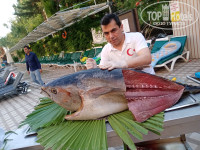 Ресторан просто чудо: разнообразие еды, первое, второе. Правда мы супы не ели. Дети только картошку фри, а мы с мужем от рыбы балдели и креветок. За 10 дней два раза был рыбный день. Это просто что-то. огромного тунца повесили перед рестораном, а потом разделывали, шашлык был офигенный. Анимация каждый вечер разная: то циркачи, то артисты, то еще что-то, запомнились роботы светящиеся. Пляж хороший, тут же через дорогу, там же бар, и опять дети бегают за колой, картошкой. А мы с мужем лежим на пляже, и нам носит бармен пиво. Красота! Такая разгрузка просто необходима. В баре в отеле каждый день давали разные коктейли, я брала часто из-за кусочков льда, но не пьянела. Было очень жарко. С детьми работали девочки наши. Мама Даша дети звали ее, она все с ними играла. Что еще сказать. Тут же рядом с отелем есть минибазар, но мы ездили в Аланью. А еще на ресепшен нам сказали, что приехал пятничный базар, и мы пошли наверное км 5 пешком до этого базара, нашли его, и еще по базару км 5 ходили. Он такой длинный. Отдых понравился.