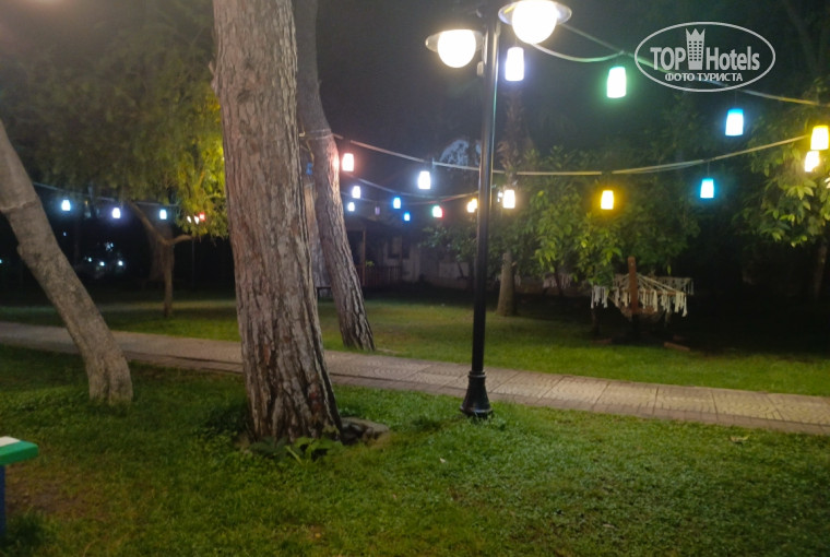 Сначала мы сидели на террасе возле лобби-бара, но после 11 вечера к нам подошёл сотрудник и очень вежливо попросил не шуметь (хотя мы просто разговаривали, даже не смеялись) так как есть жалобы от гостей главного корпуса на шум. Мы пошли в сад, только сели, как пришёл сотрудник и начал выключать свет. И мы просто ушли в номер.
