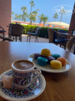 Еда всегда свежая, каждый найдет себе по вкусу. Из морепродуктов: Сибас, Дорадо, Пикша, креветки, мидии, кольца кальмаров, были раки, красная рыба и слабосоленая. В разных вариациях курица, говядина и баранина. Фрукты: клубника, апельсины, персики, груши, сливы, абрикосы, арбузы и дыни. Есть отдельная детская зона.
