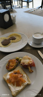 Утром жарят яичные блинчики с наполнением по выбору или глазунью, просто блинчики и капкейки.