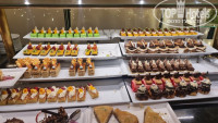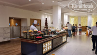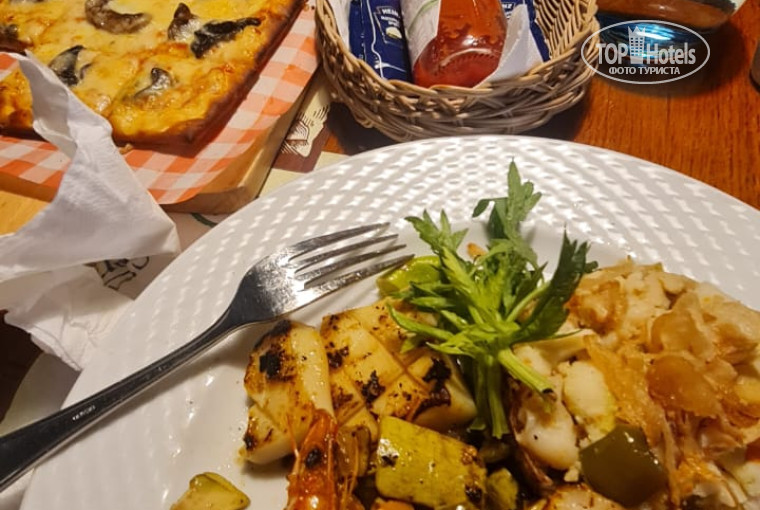 Ресторан. Даже в период пиковой загрузки очередей не бывает. место почти всегда можно найти. Питание нормальное. Хороший сладкий стол. Понравились сырная и мясная нарезки, вкусная халва, круассаны на завтрак, бывал неплохой гриль и вкусные супы, мусака на завтрак. в остальном не супер, но нормально.
