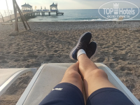 Очень удобный вход на море, пирс классный, с него прям "щучкой" нырял, глубина большая. Один минус у моря - это рыбки мелкие кусаются, если долго стоять на месте. А так море тёплое и чистое. Я каждое утра по пляжу гулял до соседних отелей, запомнился отель NG Phaselis Bay, очень большой и красивый. Лежаки свободные можно найти, забит не битком.
