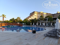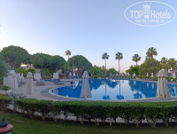 Отдыхали в этом отеле в Июне 2025. Отель не молодой 33 года с последней реннновацией в 2014 году. В номерах, туалетах, пляже , ресторане и территории постоянно проводится хорошая уборка. Видно что делается текущий мелкосрочный ремонт все чисто, подкрашено побелено и заменено но каких то красивых интерьерных решений или новых оформлений вы не найдёте, отель старый но довольно уютный. С другой стороны за эти годы территория приобрела законченный вид, насаждения аккуратно подстрижены, прогулочные зоны оформлены, цветы, ландшафтный дизайн. На территории размещен зоопарк (павлины, еноты, страусы, птичник, волки, фламинго) можно покататься на лошадях. Достаточно протяженный пляж с плавным заходом в море отлично для детей. Пляж и море чистое. Длинный пирс с баром а также зона платных шатров. Отель хорошо подходит для семейного отдыха есть детские площадки, бассейны, аквапарк детский и взрослый , даже детский садик с воспитателями, аниматоры, футбольное поле. В целом по всей территории не плохо работает вайфай за исключением зоопарка. Сезонный персонал (уборщики, официанты аниматоры) набран из Казахстана и вообще англоязычных гостей очень мало так что проблем с языком общения нет. На территории несколько бассейнов с глубиной 1,4 , 1.2 и 0.35 метра. Основное питание организовано в главном ресторане но также много баров на территории где можно перекусить. Полноценного обеда в баре на территории не получить . По питанию, голодными не останетесь, много зелени, блюда на пару , фрукты и гриль, рыба всегда, морепродукты. Общая для Турции проблема с супами. В ресторане чисто , превосходно работают официанты сразу наливают воду и уточняют по напиткам. Свежие цветы на каждом столике. В отеле при выселении и в случае наличия свободных номеров можно продлить проживание (номер стандарт 90€ до 15:00 и плюс 20€ за каждый час до 19:00).