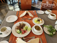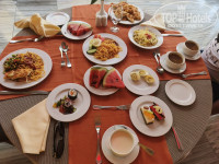 В ресторане сервис отличный, по питанию все понравилось, готовят вкусно и неостро, ассортимент всегда есть, блюда доносят. На завтрак: различные овощи, фрукты, сырная и колбасные нарезки, йогурты, готовят яичницу с наполнителями, есть готовая выпечка, пекут блинчики и вафли, очень удивил и порадовал свежий мёд в сотах, прям сказка!!!! На обед и ужин пекут вкуснейшую пиццу, есть готовые блюда на раздаче и всегда готовят при тебе пасту, жарят мясо или рыбу. Несколько раз в неделю была рыбная тематика: готовили роллы, жарили креветки, был сливочный суп с морепродуктами. Для тех, кому важен поздний ужин, сразу хочу отметить - здесь это выглядит как картофель фри/ломтиками и котлеты/нагетсы в лобби, нет возможности поесть горячий суп или второе в главном ресторане, как это бывает в других отелях, имейте это ввиду.