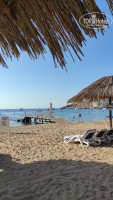 Пляж. Чистый, лежаков много, большие зонтики, что очень удобно, особенно для большой семьи. Есть платный бар, бесплатный и ресторанчик с пиццей и бургерами. Соки пакетированные, очень вкусный сок из манго и гуавы. Море теплое. Рыбок очень много, кораллки не нужны,много места и для просто поплавать. Не очень понравилось, что недалеко лодки, неприятно пахнет топливом, когда заправляются. Туалет находится в здании напротив ресторана.