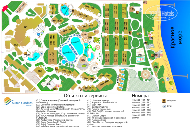 На территории отеля несколько бассейнов. Есть и для маленьких детей и для взрослых. Аналогично персонал помогает перенести все необходимое. Постоянно контролируют спасатели. В наличии бесплатно нарукавники и круги для маленьких детей.