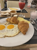 На завтрак свежевыжатый сок: манго, апельсин, клубника. Разнообразные сыры, колбаски, из каш - овсянка, пшенная , рисовая, различные виды яичниц, омлетов, круассаны, много сладостей.