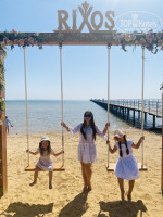 Сегодня 29.06.2025 года завершается наш 9тидневный отдых в даном отеле . Прилетели рано утром,от аэропорта за 15 мин доехали одни в микроавтобусе ,заселили нас раньше времени ,хоть и пришлось подождать , но нам это было не сложно ,мы позавтракали и сразу пошли плавать в ближайшем бассейне , Территория отеля огромная ,красивая,как и сам отель в целом . делится он на две части :первая линия ,там расположено большинство номеров , ресторанов, развлечений ,активностей и т.д. И вторая линия ,где поспокойнее. Нам дали номер категории выше ,чем бронировали ,разместили в зоне аква ,где аквапарк ,это вторая линия .номер 29102.сам номер понравился ,чистый ,свежий ,мебель хорошая ,все на уровне.уборка ежедневная,очень хорошая ,из полотенец всякую красоту делали ,спасибо за это Хасаму и Ахмеду . Есть тапочки ,халаты ,в ванной всякие там наборы зубные щетки,пасты ,бритвы,ватные палочки ,диски ,пилочки для ногтей,шапочки для душа . Полный мини бар всяких напитков , а также чипсы ,шоколадки ,вино и т д . вид из номера не очень ,но расположение номера для нас было идеальным ,тк всегда было очень тихо и можно было спокойно укладывать детей и в тихий час и на ночь ,не было шума или музыки ,ничто не беспокоило .т к территория очень большая ,то по всей территории отеля ездят электрокары ,развозящие отдыхающих по разным местам (в ресторан ,на море ,по длинному пантону,в соседний Rixos 18+ и т д )но можно и пешком пройтись.В Отеле множество бассейнов на любой вкус и возраст . Проводятся разные активности и для детей ,и для взрослых ,их расписание можно посмотреть . Есть Roxy club для деток ,там много всего интересного,но … мои не оставались ,т к не было русскоговорящего аниматора там ,им не нравилось ,что их не понимают . Большая просьба обзавестись хоть оним русскоговорящим аниматором , т к большинство отдыхающих русскоговорящие . На территории пляжа есть тренажеры и зона где проходят разные занятия :йога ,силовые тренировки ,зумба и тд, тренера понимают по русски,вообще,очень много персонала понимает и частично говорит по русски . Есть самый большой ресторан с огромнейшим выбором на любой вкус ,но нам больше всего нравился ресторан Веранда ,который как раз был к нам ближайший 😍,выбор блюд тоже всегда был прекрасный ,хоть и не такой обширный ,как в основном в силу того что он камерный и уютный,нет ощущения толпы ,очень комфортно .Официанты там просто чудесные 😃очень внимательные ,запоминают все твои вкусы ,к каждому индивидуальный подход ,тут прям чувствуешь себя премиум клиентом 😎дети тоже от них были в восторге !!!понимают и говорят по русски . Дольше минуты у нас никогда не стояла опустевшая тарелка ,моментально убиралось все со стола ,т е из-за того что ресторан небольшой,официанты могут отследить каждого гостя и сделать его пребывание в ресторане максимально комфортным.также есть множество ля карт ресторанов ,их надо бронировать заранее ,мы про них вспомнили лишь под конец отдыха и успели лишь на один итальянский,нам он очень понравился ,очень вкусно ,но ,главное ,безумно красиво и изыскано внутри ,глаз радуется . В отличие от множества египетских отелей здесь отличный импортный алкоголь .Больше всего мне понравились коктейли на лобби баре аква ,очень вкусные 👍👍👍бармен супер .Полотенца можно взять везде(море ,бассейны ) в неограниченном количестве ,нет этой ерунды с обменом их на к