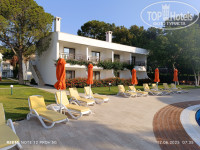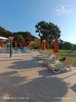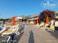 Отличный ухоженный чистый пляж. Лежаков хватает всем в любое время. Матрасы хорошие удобные - весь день проводили на пляже но солнце активное крем 50+ иначе обгорите с 11:15 часов даже под зонтом . Полотенца меняют каждый день 8:00- 17:00 часов. Души при входе на пляж и на пирсе. На пирсе две лестницы. Галька в море крупная, кто то заходил в коралках кто то без. Есть вход по мешкам специально уложенным.