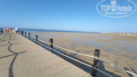 ПЛЯЖ Огромный полупустой. Мы практически на нем не лежали. Сразу с вещами шли на пирс. Там есть полочки, есть стулья. Мы там купались и отдыхали. Потом уходили к бассейнам часам к 12. В море с пляжа зайти нельзя. Вернее, можно, но надо очень долго идти по каменной плите, покрытой песком. Отлив на фото выглядит страшнее чем в реальности. Пирс реально длинный. Но идти по нему не тяжело, обдувает ветерок, отвлекает живность в море. Я думал будет хуже. Прямо с пирса видели желто-голубых скатов-хвостоколов, иглобрюхов, рыб-хирургов. Всегда можно кого-то увидеть. Общая длинна пирса 360м. На расстоянии 280м. от берега есть лагуна, в которой можно купаться. Дно песчаное, с редкими камешками. Кое-кто плавает там в кораллках, но большой нужды в этом нет. В лагуну с пирса есть 2 лестницы, довольно крутые. Некоторые дети пугаются. Смотреть в лагуне с маской не на что. Волнение там меньше чем на конце пирса.