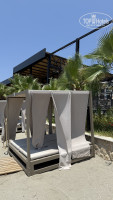 1. Территория отеля. Ухоженно, чисто, сотрудники стараются. Большой бассейн, водные горки - обязательно к посещению. Вся активность у бассейна, поэтому лежак занять было сложновато. Но на пляже всегда всем желающим хватало лежаков. Также лежаки есть на пирсе. И есть две категории платных лежаков - серые со шторами и второй пирс где 5 шатров.