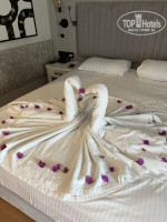 4. Номер и уборка. Светло и стильно, но видно, что ремонт выполнен не из дорогих материалов. Достаточно тихо, слышны только нечастые автобусы, которые привозят гостей в соседний отель или непосредственно в Seven. Можете кидать в меня помидоры, но. Уборка как таковая отсутствует. Заправляли кровать, пополняли минибар (в номере бесплатный) и делали лебедей. Мыли ли у нас хоть раз пол? Сомневаюсь, где была грязь, там она и оставалась. Душ так же не мыли ни разу, потому что после пляжа оставались камушки, которые так и пролежали на одном и том же месте. Зеркала в пятнах, в ванне от зубной пасты. Я понимаю, что мы приехали отдыхать, не сидеть в номере и бла-бла-бла. Но давайте будем объективными. Приезжая в отель 5* - хочется видеть сервис. Опережу ваши вопросы - на чай горничной мы оставляли, но не помогло. Наверно, добираясь до нашего номера не оставалось сил на уборку, ну что ж.