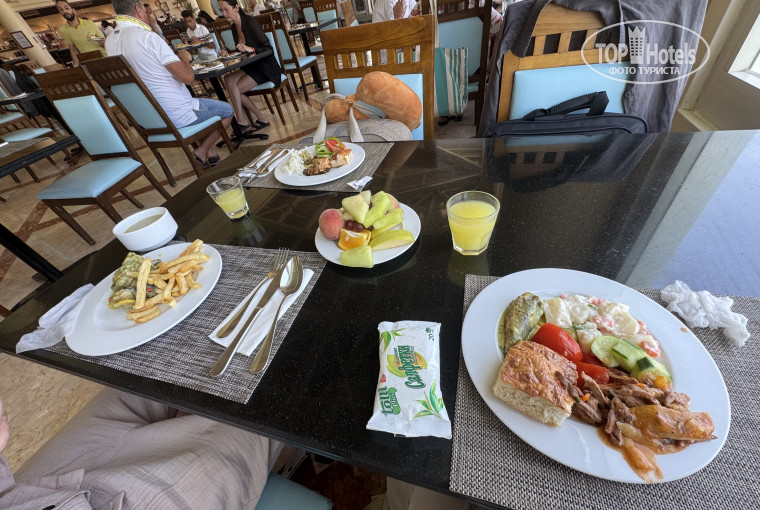 Экскурсии. Наш гид (я не помню как ее зовут толи Гара, толи Гата, толи Гретта, что то похожее) Не компитентна от слова совсем. Наглая. В общем. Мы заказали 2 экскурсии : мото-сафари для меня и сына и вечерняя прогулка на троих. Она не дала нам никаких квитанций. Ок. Нам не сказали, что детям до 16 лет (сыну 14) нельзя самому управлять квадроциклами, нам не дали шлемы. На обратном пути нас гиды очень сильно подгоняли типа «быстрее быстрее». В общем впереди сына ехал парень, а я за сыном. Парень резко затормозил и мы с сыном полетели. Итог: сын хромает уже 4 день, я частично потеряла память и сутки пролежала в госпитале. Обслуживание в госпитале конечно на высшем уровне. В России к сожалению такого нет. Так как тест на алко показал 0 все оплатила страховка. Вплоть до лекарств в аптеке и водителя. По приезду в отель меня встретили и уже весь персонал знал, довезли до номера и очень за меня переживали. Тем временем наш гид (Гара или как там ее) написала лишь одно сообщение «как самочувствие», на мой ответ «плохо» последовало молчание. На вечернюю прогулку мы поехали, воды не дают, очень не комфортно, гид русская, но очень скучная. Первая остановка была фабрика масел, очень долгая и скучная. Мы написали расписку о том, что дальше не поедем и на такси уехали обратно в отель. У нас не поинтересовались почему. При встрече с нашим гидом, она даже не поздоровалась, я уж молчу о том чтобы спросить как самочувствие хотя бы у сына. Следующая экскурсия была поездка на катере , погоня за дельфинами. Купили мы ее у Али, аква-дайвинг. Находится рядом с пляжем, где все аквалангисты тусуются. В общем нас в катере было 6человек. Мы втроем, мужчина с сыном и соответственно водитель катера. Отвозят в открытое красивое море и Вы идете плавать с масками (входят в стоимость). Даже если вы не очень хотите, вас настоятельно просят, ну можно сказать заставляют. Все вместе мы плаваем минут 15, можно и дольше. Я так как не очень люблю это дело, вылезла уже минут через 7. На обратном пути встретили дельфинов, очень эпично, красиво и много. Остались в восторге. С подругой решили оставить 10$ чаевых водителю. У нее изначально было в сумке 20 и 10$, но 20 она не нашла и тогда я подумала что у меня есть 20, 20 и 10, но тоже обнаружила, что 20 не хватает. Короче говоря по 20 у нас не хватило. Мужчина , который был с нами не знал сколько у него было с собой, поэтому он утверждать что у него пропало что то он не мог. Поэтому если поедете с ними, то настоятельно прошу не брать с собой ничего ценного. Или не выходить с катера всем вместе. В общем советуем с экскурсиями быть максимально аккуратными и осторожными! Кстати, фотосессии проходят весело, задорно и получаются очень красивые фотографии. За это и снимаем одну звезду с отеля