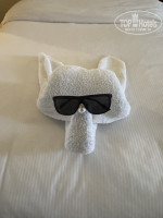 Постараюсь кратко, но развернуто оставить свои впечатления об отеле. За что сняли одну звезду опишу в самом конце, рекомендую прочитать. Нас было трое: я с подростком в одном номере и подруга во втором. По приезду нас сразу отправили на обед, так как уже заканчивался, оформили после того, как мы поели. Нас приятно встретили на ресепшене, там мы дали 20$ чаевых сразу и озвучили «лучшие номера». Нам дали 2 номера рядом, с прекрасным видом на море, чистые, большие, есть все необходимое. Спрашивали у других про номера- были не довольные. Остались в восторге, но мы и не искали никаких изъянов (ведь кто хочет тот всегда найдет). За 1$, конфетки, шоколадки и семечки от Мартина нам делали разную красоту каждый день. Очень приятный уборщик.