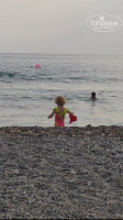 Пляж близко (тоннель под дорогой перейти - и вы на месте). На пляже песок плавно переходящий в мелкую гальку. Из минусов - в море местами валуны. В первый день по незнанию ударилась пяткой об один из них, когда волной накрыло. Впредь уже осторожничала и всë было нормально.