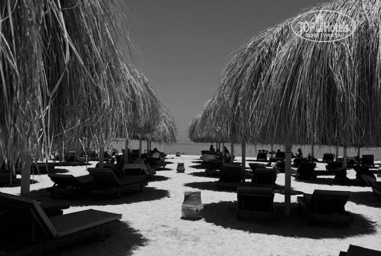 На пляже также есть бар и холодными напитками , кофе и водой.