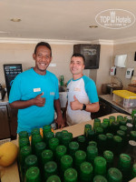 Заход в море только с пирса. Так же можно зайти в море на 1-2 от берега и полежать на песке. Риф живой и красивый большое разнообразие рыб. Приплывали черепахи, скаты, тунцы. Разрешали плавать только в зоне огороженной буйками, но всё зависело от спасателя. Один свистел и ругался, другие более спокойно относились к этому заплыву.Во время отлива ходили по отмели и наблюдали за жизнью морских ежей ,морских звёзд.Но больше всего поразили огромные раковины с раками отшельниками.Ходили с детьми в аквапарк.Горки не очень экстримальные но для разнообразия хорошо.Для желающих большего разнообразия можно за отдельную плату сходить в аквапарк через дорогу в Пикальбатрос.