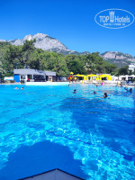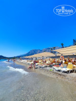 Пляж с прекрасными видами, очень уютно и удобно. И камни и песок, детишки занимались. На пляже в баре услужливый бармен. Выносит напитки прям к лежакам, когда ты лежишь рядом))) все в пластиковых стаканах, из спиртного только пиво.