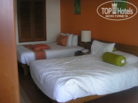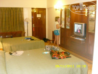 Номера роскошные: огромные крепкие (!) кровати - 2 двухспалки в двухместном номере, большой плазменный телик, холодильник, мини-бар, санузел с ванной и большой душевой кабиной, работающие (!) кондиционер и сейф, большой балкон с видом на внутренний двор с двумя бассейнами (третий возле пляжа). Каждому отдыхающему комплект: хлат, тапочки, зонтик.