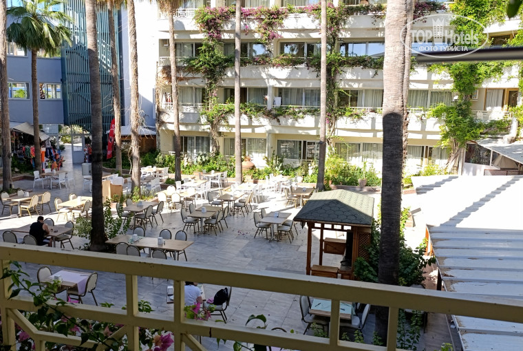 Территория у отеля зеленая и компактная.