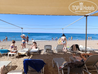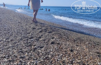 Пляж: до пляжа 7 минут пешком, шезлонги под навесом к 10 заканчивались, но на солнце всегда можно найти место. После 12 многие уходят на обед и места есть и под тентом . У лежаков песок. Вход в море - мелкая галька и очень резкая глубина. Ногам тяжело входить и выходить по камням. Море чистое.