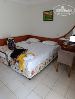 Номер: это как кому повезет, номера в этом отеле разные от крохотного миниатюрного до нормального стандарта, нам достался маленький номер с видом во внутренний двор (152). Моей сестре достался номер около 10 кв.м. с таким маленьким балкончиком и с видом в стену, кошмар. Номер не дали менять, сказали 100% загрузка. Номер старенький, у сестры более обновлённый. На ресепшене сказали, что у них все номера обновились, ну не знаю, возможно мокрую зону они и обновили, но лично у нас номер старый. В шкафу ни одной полки, просто штанга с вешалками, нет прикроватных тумбочек. См. фото. Звукоизоляции нет вообще, каждый чих, каждое слово, все слышно. Есть мини бар: вода, газ.вода и чай. В номере нет чайного набора. Вода в отеле предоставляется не в бутылках, не удобно на мой взгляд (см. фото). Мы покупали бутылку и переливали в нее воду от отеля.