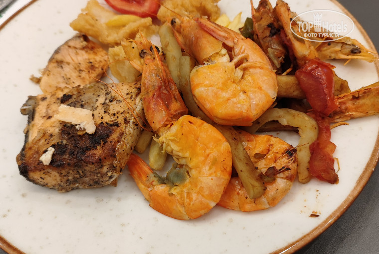 Ресторан супер! Еды огромное количество, тут не то что голодным не останешься, тут дай бог выйти и не лопнуть, хочется пробовать всё, каждое блюдо вкусное, интересное, реально хочется есть всё!! Египетские блюда попробовали, типо кошари, их местная еда, кофта это наш люля-кебаб, кстати на мангале очень вкусно готовят, шашлыки разные, всё сочное, по русской кухне скучать не пришлось, единственное может по пельменям😁 супы вкусные, сказать что сильно наполненные нет, но бульон вкусный, и крем супы хорошие!