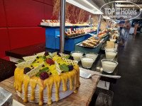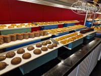 Есть витрина с пирожными, тортиками, печеньками и фруктами, которая находится в свободном доступе. Выбор не очень большой, но есть, что поесть.