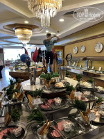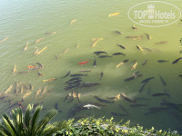 Питание и бары. Баров много, сопровождают на всем пути от Golf до пляжа. Это собственно бар в лобби Golf, затем бар в лобби Deluxe. Там же кондитерская, работающая до 22:30, спускаемся по чудесной затейливой лестнице (народ там фотографируется постоянно), оглядываемся назад под лестницу, там еще один бар. Движемся далее, тут череда магазинов (куда без них!?), далее слева - кофейня, ценители утверждают, что там лучший кофе в отеле, справа - булочная. Выходим из здания отеля, впереди выдача полотенец, но зачем их тут брать, можно это сделать ближе к пляжу, там есть кабина выдачи. Полотенца пляжные новые свежие, видно по пришитым биркам, брендированные, выдают без карточек. Тащить сдавать их не нужно, оставляешь на лежаках. Далее снова бар, вечером на больших экранах спортивные мероприятия, движемся по длинному мосту, смотрим влево – там тоже бар. Наверняка какой-то пропустил. Количество и качество напитков везде одинаковое, то есть полное. Еда. Отлично. Было все: мясо, рыба, морепродукты (как в блюдах, так и отдельная подача). Завтракать можно как в Golf, так и в Deluxe, но в Golf поспокойнее, бонусом рыбок можно чудесных, здоровенных разноцветных карпов кормить. Яичницу готовят лучше в Golf, красная рыба была, сыр с плесенью был, тонко нарезанное, похожее на карпаччо, мясо говядины было. И много чего еще. Обед. Обедать можно в Golf по меню: тут суп дня, стейки из красной рыбы, стейки из говядины, пицца. Далее чудесное место и интересная задумка – это площадь Sueno. Череда киосков с блюдами как турецкой, так и международной кухонь, порционное мороженое, вафли, супы, готовые продукты с гриля, напитки в банках, вино белое-розовое-красное-игристое. В полдень там жарко, персонал отеля установил вентиляторные установки, но их не хватало. Можно отобедать в главном ресторане, предложение блюд там меньше, чем на ужин, зато приятные и разнообразные залы приемы пищи, и стоит ли писать, что они все кондиционируемые. Ужин. Тут все побогаче, разнообразней. Блюд просто огромное количество, и так пишу уже долго. Работают оба ресторана в обоих отелях. Нужны тишина и спокойствие – вам в Golf, нужен простор, шум и выбор блюд, больше чем в Golf, тогда отправляйтесь в Deluxe.