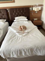 Номер. Посторонних запахов нет, чисто, но было обнаружено, что мини-бар заполнен не полностью, ванных принадлежностей тоже не доставало (набор для бриться). Еще нам понадобился утюг. Сразу же звонок в службу по работе с гостями, там уже привычный русский язык, высказали свои замечания, не успев переодеться в курортное, уже встречали сотрудников отеля: один принес пополнение мини-бара, как потом оказалось с избытком, второй – утюг и недостающие принадлежности в ванную комнату. Постельное брендированное тремя золотыми полосками белье идеально чистое, полотенца все в таком же состоянии. В номере, хоть и со следами эксплуатации, работало все. Разве что балконная дверь не запиралась на защелку для предотвращения проникновения извне, не сразу, но за пару дней проблему устранили. Большой новый ТВ, не включали, не знаю, что там. Чайный набор, халаты, тапочки, сейф, добротная пляжная сумка. Терраса, на ней шезлонг, столик, два кресла. Перед террасой, в номере же, спустившись на две ступени, зона отдыха, два кресла, столик. Кондиционирование считаю недостаточным: кондиционер центральный, есть пульт управления настенный, понизить температуру самостоятельно не удалось. Показывал 24-25 градусов. Хотелось бы на пару градусов ниже. Особенно на фоне освежающей температуры в лобби отеля.