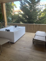 Территория небольшая, но грамотно все расположено, находится на первой береговой линии, много цветов, шикарный зеленый газон, огромный бассейн с горками, очень красиво и уютно, по вечерам включают иллюминацию. Есть хамам, сауна и баня, спортзал, крытый бассейн.