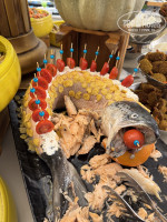 3. Питание отличное! Да, твердая 5-ка, главное большой ресторан, всегда есть своболные столики и нет очередей за горячим!! Здорово придумали, что зона гриля вынесена на улицу. Если хочется изысков - например красная соленая рыба на завтрак, то это надо в другой уровень отеля! Тут очень большой выбор блюд, много видов мяса и есть рыба, мы остались довольны. Отдельно детская зона и блюда, ребенку 1,8 лет был большой выбор питания.