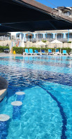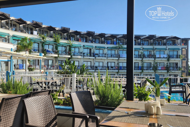 Отдыхали 7 ночей 6 дней.Летели С Нижнего Новгорода туда примерно четыре с половиной часа,обратно три сорок.От аэропорта час-час тридцать ехать.Успели до закрытия основного ресторана на ужин.Номер у нас заранее был проплачен с видом на море(доплата при покупке тура) была 5000 рублей,но нам сразу посоветовали.Оказалось свободного не было,разместили первый этаж,вида никакого,но нам надо было только переночевать с дороги,поэтому даже не собирались "ругаться",на следующий день к 12 нас заселили на 4 этаж самый верхний 5435 номер в центре отеля почти и вид оказался шикарный(комплимент от отеля шампанское и фрукты за неудобства)!!!Питание на любой вкус омлет,яичница-глазунья,яйца 2 вида варки,сыры примерно на один вкус,но разных форм,оладушки,море джемов,сухие завтраки,каша,кафе из кофемашины вкусный-это завтраки.Обед иногда не ходили,было лень сперва в номер идти переодеваться)Всегда можно было поесть на пляже-пицца,бургеры,фри,нагетсы,шаурма,в 16 часов кукуруза вареная,арбузы.Ужин всегда рыба на костре в основном дорадо,была форель красная и часто речная форель-вкусно...какие то фрикадельки,котлеты,много зелени,салаты,всякие их намазки...Из фруктов-арбузы,дыни,яблоки красные,желтые,апельсины.Много выпечки,пахвала,тортики для любителей сладкого и пересладкого)Вдоль моря идет набережная погулять,магазинчики.На ресепшене вежливый персонал -всегда готовы придти на помощь!Вкусное мороженое,за ним идти надо в здание основное,напитки разные идут по системе ULTRA,это коктейли разноцветные-пробуйте и найдете ,что понравилось,пиво,все как всегда в Турции.Море шикарное,заход крупная галька,поэтому лучше в спецобуви,так,конечно тоже можно и мы заходили,но удобнее заходить не босиком).Отель наверное все таки не рассчитан на детей,ну мне так показалось ,ездили туда ,где много детей.Здесь больше пар,компаний или постарше детишек от 10 может,есть конечно и малыши,но не много.Хотя есть и миниполе футбольное и игровой центр,на минидиско немного народу было.В общем мы хотели улететь из дождей в тепло +37 и шикарное море,с супер видом из номера-у нас получилось!Ищите плюсы в отдыхе и он пройдет у вас на 1000%.